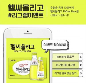 현대약품의 헬씨올리고가 오는 15일까지 현대약품 공식 SNS 채널을 통해 ‘헬씨올리고 #리그램이벤트’를 진행한다. 이번 이벤트에 참여하려면 현대약품 헬씨올리고 공식 인스타그램 계정을 팔로우한 뒤, 이벤트 게시글을 리그램하고 댓글로 ‘리그램 완료’라고 작성하면 된다. 친구 태그를 추가하면 당첨 확률이 올라간다.추첨을 통해 10명에게 헬씨올리고 100ml 한 박스를 증정하며, 당첨자는 오는 17일 미에로 공식 SNS 계정을 통해 발표될 예정이다.현대약품 관계자는 “면역력이 떨어지기 쉬운 겨울, 고객들에게 장 건강과 면역력을 지킬 수 있는 건강 음료를 선물하고자 이번 이벤트를 마련했다”며 “앞으로도 고객의 건강을 위한 재미있