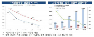 지난해 저축은행의 금리가 소폭 낮아졌지만 여전히 평균 18%로 고금리 지적이 일고 있어 금융당국이 개선 압박에 나설 것으로 보인다. 8일 금융감독원이 발표한 '저축은행 가계신용대출금리 운용 실태 및 대응 방향'에 따르면 지난해 말 잔액 기준 평균금리는 19.4%로 전년(21%) 대비 1.6%포인트 내려갔다. 같은 기간 신규 취급 고금리대출 비중은 26.9%로 전년 대비 18.3% 하락했다. 잔액 기준으로는 42.5%로 전년(56.9%) 대비 14.4%포인트 내려갔다. 하지만 OK·웰컴저축은행 등 대부계열 저축은행을 포함한 주요 저축은행의 고금리대출 잔액 비중은 여전히 높은 수준으로 집계됐다. OK(68.5%), 웰컴(54.4%), SBI(46.6%), 유진(44.
