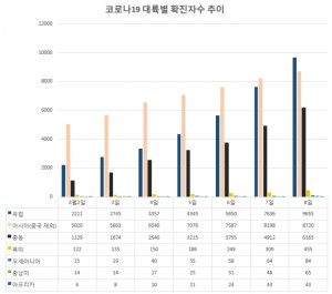코로나19 확진자 발생 국가가 100개국을 넘어서 글로벌 본격 대유행(팬데믹)이 시작된 것으로 분석돼 우려를 낳고 있다.8일 글로벌빅데이터연구소(소장 김다솜)는 "신종 코로나바이러스 감염증(이하 코로나19) 확진자 발생국가가 이날 오전 7시 기준 102개국으로 전날 99개국에서 3개국 늘었다"고 밝혔다.새로 늘어난 나라는 프랑스령 기아나(5명), 몰타(3명), 마르티니크(2명) 등이다.이날 전세계 확진자 수는 10만5,831명으로 전날에 비해 4,050명 늘었으며 중국을 제외한 전세계 확진자 수는 2만5,173명으로 전날 2만1,208명에 비해 비해 3,965명 18.69% 급증했다.특히 해외 여행국 수가 많은 유럽과 미국의 확산세가 두드러짐에 따라 글로벌