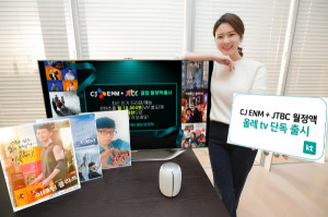 KT가 올레 tv에서 CJ ENM과 JTBC의 방송 프로그램을 한 번에 이용할 수 있는 월정액 결합상품 ‘CJ ENM+JTBC 같이 즐기기’를 선보인다고 6일 밝혔다. CJ ENM과 JTBC의 월정액 상품을 묶어 하나의 상품으로 선보이는 것은 올레 tv가 최초다.기존에는 CJ ENM 월정액 상품(월 1만4300원, 부가세 포함)과 JTBC 월정액 상품(월 7700원)을 각각 가입할 경우 월 2만2000원에 이용할 수 있었다. 이번에 새로 출시한 ‘CJ ENM+JTBC 같이 즐기기’ 결합상품에 가입할 경우 10% 할인된 금액 1만9800원에 JTBC와 CJ ENM의 인기 프로그램 ‘이태원클라쓰’, ‘하이바이 마마’, ‘방법’, ‘슈가맨3’ 등을 모두 감상할 수 있다.KT는 ‘CJ ENM+JTBC 같이 즐기