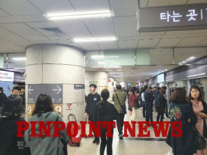 "면접 시간을 늦출 순 없을까요? 지금 지하철이 너무 안와서..."지난 7일 오후 1시 서울지하철 9호선 국회의사당역 안. 한 여성의 근심 가득한 목소리가 수화기 너머로 들려온다. 모 공기업 서류전형에 합격 후 면접 장소로 향하던 김모(25)씨 였다. 그는 "평소 이 지하철 구간을 자주 이용해 열차 시각을 잘 알고 있다"면서도 "오늘따라 유독 열차가 늦는 것 같다. 열차를 기다린 지 벌써 15분이 경과되고 있다"고 한탄했다.이날 찾은 국회의사당역은 수 많은 사람들로 발디딜 틈이 없었다. 지하철 운행이 연이어 지연되면서 호차별 탑승 대기동선이 평균 15m 가량 길게 늘어선 탓이다. 승강장 전체가 사람으로 부대끼며 체온이 올라 땀을 흘리는