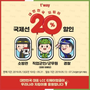 고위 공무원이나 국회의원 등 정치권 인사들이 항공료를 할인 받는 경우가 아닌 국가유공자와 소방관, 경찰관, 군인들이 항공료를 할인 받는 이벤트가 진행된다.13일 티웨이항공은 6월 호국·보훈의 달을 맞아 소방관, 직업군인 및 군무원, 경찰을 대상으로 국제선 전 노선에서 20% 할인혜택을 제공하는 이벤트를 실시한다고 밝혔다. 국내선에 예우 혜택이 아닌 국제선 전 노선 할인과 소방관 등 실무자들에게 주는 혜택에 주목했다. 물론 다소 생소한 할인이벤트라 좀 더 주의 깊게 살펴봤다. 그리고 물어봤다. 왜 티웨이항공이 소방관 경찰관 군인 등을 포함해 국가유공자에게 항권권을 할인해 주는지 궁금했다. 그리고 관련 혜택에 대해 좀 더