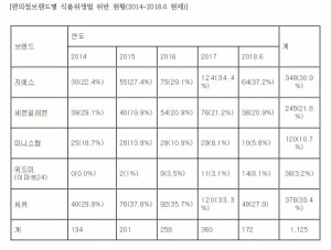 BGF리테일의 CU(이하 씨유)가 최근 5년 간 국내 5대 프랜차이즈 편의점 중 식품위생법을 가장 준수하지 않은 것으로 드러났다.또한 GS25, 세븐일레븐, 미니스톱, 위드미 등 국내 다른 프랜차이즈 편의점 역시 식품위생법을 어겼다가 적발된 사례가 최근 3년 사이 3배 가까이 증가한 것으로 나타났다.12일 국회 보건복지위원회 더불어민주당 기동민 의원이 식품의약품안전처에서 제출받은 자료에 따르면 2014년부터 올해 6월까지 국내 5대 편의점 중 씨유는 총 376(33.4%)건의 식품위생법을 위반해 동종업계에서 가장 많은 위반건수를 보였다. 이어 GS25가 348(30.9%)건, 세븐일레븐이 245(21.8%)건 순으로 각각 뒤를 이었다.반면 미니스톱은 120(