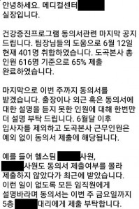 바디프랜드가 이번에는 직원들에게 건강증진 프로그램에 참여하겠다는 동의서 작성을 강요했다는 주장이 제기돼 논란이 일고 있다.바디프랜드는 현재 전 직원을 상대로 건강증진 프로그램 참여 동의서를 받고 있는데, 이 동의서에는 '메디컬 센터와 함께하는 임직원 건강관리 프로그램에 동참하겠다', '메디컬 R&D센터 사내의원의 검사와 진단 결과에 따른 의사의 처방을 적극 실천하겠다'는 등의 내용이 담겨 있다.동의서를 작성한다고 해서 모든 프로그램이나 검사에 참여해야 하는 것은 아니라고 회사는 설명했지만, 직원들은 이후 회사가 입장을 바꿔 동의서를 근거로 프로그램 및 검사 참여를 종용하면 직원으로서는 받아들일 수밖에 없지 않
