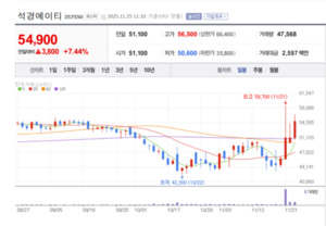 나노기술 기반 무기소재 전문기업 석경에이티 주가가 강세를 보이고 있다.25일 한국거래소에 따르면 이날 오전 11시7분 현재 7.63% 올라 5만 5000원에 거래되고 있다.주가는 이중 바닥에서 벗어나 가속도를 내는 모습이다.석경에이티가 차세대 전고체전지용 소재와 열전도성 세라믹 소재 사업을 확대하며 성장 모멘텀 확보에 박차를 가하면서 주가에 훈풍을 불어 넣고 있는 것으로 보인다.석경에이티는 바이오헬스케어, 전기전자, 코팅 등 다양한 산업용 기능성 나노소재를 개발·제조하며 국내 나노소재 시장에서 기술적 경쟁력을 갖추고 있다.YbF3,