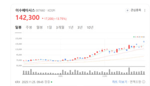 반도체 AI 인프라 투자 확대로 수혜주로 꼽혀온 이수페타시스 주가가 초강세를 보이고 있다.25일 한국거래소에 따르면 이날 오전 9시46분 현재 13.75% 상승 14만 2300원에 거래되고 있다.증권가 호평에 힘입어 이날 장 초반 52주 신고가를 새로 쓰며 강세 흐름을 이어가고 있다. 텐서처리장치(TPU) 등 고성능 연산칩 공급망에서 ‘핵심 밸류체인’으로 평가받으며 밸류에이션 재평가(리레이팅) 국면에 접어들었다는 분석이 투자심리를 자극하고 있다.AI·고성능 컴퓨팅(HPC) 수요가 가파르게 증가하는 가운데 PCB 공급난이 지속되며 고