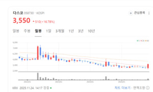 다스코 주가가 크게 오르고 있다.24일 한국거래소에 따르면 이날 오후 2시19분 현재 16.78% 상승 3550원에 거래되고 있다.주가는 장기 박스권에서 벗어나 가속페달을 밟고 있다. 기업가치에 비해 주가가 지나치게 빠졌다는 인식에 매수세가 몰리고 있는 것으로 보인다.도로안전시설물 분야에서 국내 선두주자로 자리매김하며 성장해왔다. SOC(사회간접자본) 사업과 함께 차량 방호 울타리, 방음벽 등을 주력으로 구축하며, 안전한 교통 환경 조성에 기여하고 있다.총 495건의 지적산업재산권과 4건의 건설신기술을 보유하며 기술력 경쟁에서 우위