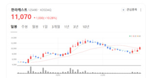 경량 소재 전문 기업 한라캐스트 주가가 초강세를 보이고 있다.24일 한국거래소에 따르면 이날 오전 9시40분 현재 10.26% 올라 1만 1070원에 거래되고 있다.주가는 하락추세에서 벗어나려 시도하고 있다.한라캐스트가 신성장 동력으로 로봇 산업에 본격 진출하며 실적 호전 기대감이 커지면서 주가에 긍정적 영향을 미치고 있는 것으로 해석된다.업계에서는 한라캐스트가 보유한 경량화 기술 경쟁력이 로봇 산업의 성장성과 맞물리면서 주가의 하방 경직성을 확보했고, 향후 턴어라운드 가능성이 높다는 분석이 나온다.한라캐스트는 그동안 자동차, 산업