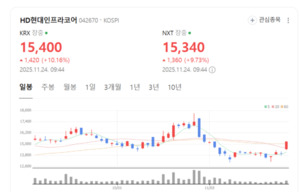 HD현대인프라코어 주가가 휘파람을 불고 있다.24일 한국거래소에 따르면 이날 오전 9시47분 현재 10.16% 상승 1만 5400원에 거래되고 있다.주가는 바닥권에서 벗어나고 있다.HD현대인프라코어가 중장비·엔진 중심의 종합 기계 기업으로 체질을 강화하며 글로벌 시장 재도약을 위한 중장기 전략을 본격 추진, 주가에 훈풍을 불어 넣고 있는 것으로 보인다.국내 기계 산업의 오랜 기반을 다져온 대표 기업으로, 2023년 사명을 HD현대인프라코어로 변경하며 새로운 도약 의지를 밝혔다.최대주주는 HD현대사이트솔루션으로, HD현대 계열사들과의