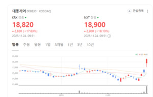 대동기어 주가가 초강세를 보이고 있다.24일 한국거래소에 따르면 이날 오전 9시 54분 현재 1만 8820원에 거래되고 있다.주가는 이중 바닥에서 벗어나 가속페달을 밟고 있다.대동기어가 국내 농업기계와 자동차 동력전달장치 분야에서 독보적 위치를 굳히면서 주가에 긍정적 영향을 미치고 있는 것으로 해석된다.농업기계, 선박기, 원동기 및 자동차 부품 제조·판매를 위해 출발한 대동기어는 꾸준한 기술 축적과 시장 확대를 통해 코스닥 상장사로 성장했다.현재 13개의 계열사를 거느린 중견 제조기업으로 발돋움하며 산업 전반에서 존재감을 높이고 있