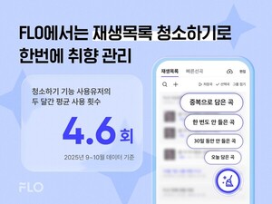 드림어스컴퍼니는 자사가 운영하는 음악 플랫폼 플로(FLO)의 '재생목록 청소하기' 기능이 인기를 얻고 있다고 24일 밝혔다.‘재생목록 청소하기’는 수십·수백 곡 단위로 누적된 재생목록을 한 번에 정리할 수 있도록 돕는 기능으로, 지난 9월 ‘FLO케어’ 네 번째 업데이트의 일환으로 도입했다. 이 기능은 누적된 재생목록을 ▲한 번도 안 들은 곡 ▲중복으로 담은 곡 ▲오늘 담은 곡 ▲30일 동안 안 들은 곡 등 네가지 기준으로 자동 분류해, 불필요한 곡을 한 번에 삭제할 수 있게 돕는다.플로가 지난 9월 3일부터 11월 3일까지 두 달