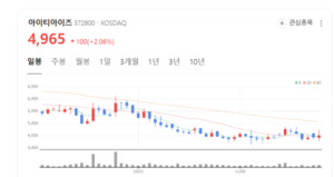 핀테크 기반 IT 서비스 기업 아이티아이즈 주가가 강세를 보이고 있다.21일 한국거래소에 따르면 이날 오후 2시53분 현재 2.06% 상승 4965원에 거래되고 있다.주가는 장기 박스권에서 벗어나려 시도하고 있다.아이티아이즈가 최근 올 3분기 누적 매출 555억 원, 영업이익 흑자 전환을 기록하며 의미 있는 실적 개선을 달성 주가에 훈풍을 불어 넣고 있는 것으로 해석된다.전년 동기 대비 매출은 28.8% 증가해 성장세가 다시 가속화되고 있다. 금융 IT 전문 기업으로 출발한 회사가 AI·헬스케어·마이데이터 등 신규 사업군을 확장한