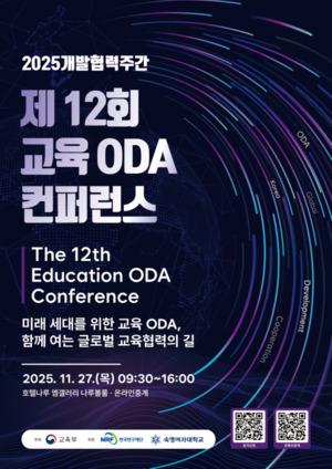 숙명여자대학교(총장 문시연)가 오는 11월 27일 서울 마포구 호텔나루에서 ‘제12회 교육 공적개발원조(ODA) 컨퍼런스’를 개최한다. 이번 행사는 2025년 개발협력주간을 맞아 교육부가 주최하고 한국연구재단과 숙명여대 글로벌거버넌스연구소가 공동 주관한다.교육 ODA 컨퍼런스는 2014년부터 대한민국의 교육 분야 공적개발원조 성과를 공유하고, 국제 교육 협력의 미래를 논의하는 대표적 자리다. 올해 컨퍼런스는 OECD 개발원조위원회(DAC) 가입일인 11월 25일 ‘개발협력의 날’을 기념하며 마련됐다.이번 행사는 인공지능(AI) 대전