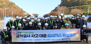 대성에너지㈜는 20일 수성구 범안삼거리 일대에서 미신고 굴착 공사로 인한 도시가스 중압 밸브 손상 상황을 가정한 실전형 비상훈련을 실시했다. 이번 훈련은 골든타임 내 신속한 현장 대응 능력을 강화하고, 유관기관 간 공조 체계를 더욱 견고히 하기 위해 마련됐다.훈련에는 대성에너지 임직원을 비롯해 대구광역시 및 수성구청, 한국가스안전공사 대구광역본부, 대구소방안전본부 수성소방서 등 50여 명의 관계 기관 인력이 참여했다.실제 사고와 유사하게 구성된 시나리오를 바탕으로 △종합상황실의 초기 상황 접수 및 판단 능력 △현장 긴급 출동 및 중