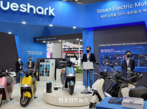 블루샤크 코리아가 전기 이륜차 브랜드 중 최초·단독으로 2021 서울모빌리티쇼(구 서울모터쇼)에 참가해 내년에 출시될 새 전기 스쿠터를 선보였다.블루샤크 코리아는 25일부터 내달 5일까지 열리는 '2021 서울모빌리티쇼'에 내년 4월 출시를 앞두고 있는 블루샤크 R1을 포함한 R시리즈 전 라인업을 다양한 컬러로 구성해 전시했다.R1은 10인치 디스플레이와 ADAS 안전 운전 보조 시스템·지문감지 보안시스템·4G 통신모듈을 갖추는 등 혁신 기능을 탑재하는 한편 최고 출력 4500W의 동력을 베이스로 기존 전기 스쿠터 대비 뛰어난 성능이 돋보인다.배터리는 폭발 위험성이 낮은 리튬 인산철 배터리를 적용했고 교체할 수도 있다. 충전방식도 일