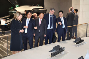 캐나다 산업부 장관이 HD현대를 찾아 글로벌 1위 조선 역량을 확인하고 상호 포괄적 경제·산업 협력방안에 대해 논의했다.HD현대는 25일 멜라니 졸리(Melanie Joly) 캐나다 산업부 장관과 필립 라포튠(Philippe Lafortune) 주한 캐나다 대사 일행이 경기도 판교에 위치한 HD현대 글로벌R&D센터(이하 GRC)를 방문했다고 밝혔다.졸리 장관 일행은 1층 로비에서 HD현대의 미래형 선박과 잠수함, 호위함, 무인수상정 등의 함정 모형을 살펴본 후 조석 HD현대 부회장, 주원호 HD현대중공업 사장과 환담을 나눴다.조석