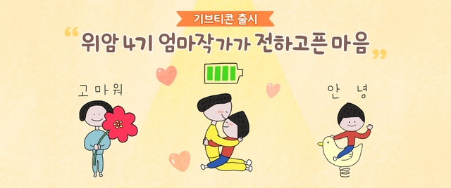 이번에 10번째로 출시한 새로운 기브티콘은 일러스트레이터, 그림책 작가 등으로 활동 중인 윤지회 작가의 '엄마와 반지'다. 생존율 7%에 불과한 위암4기로 투병중인 윤 작가는 SNS에서 글과 그림으로 엮어낸 투병 일기 ‘사기병’을 연재 중이다.