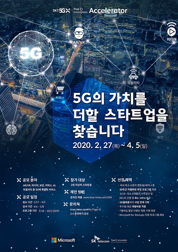 '5GX 트루이노베이션 엑셀러레이터' 프로그램에 지원을 원하는 기업이나 단체는 관련 홈페이지에서 4월 5일까지 참가 신청서를 제출하면 된다.