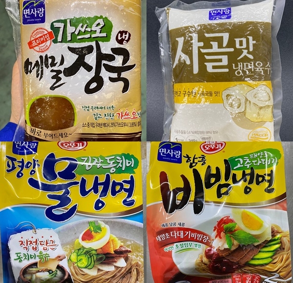각 회수대상 제품명은 ‘면사랑 프리미엄 가쓰오 냉메밀장국’, ‘쇠고기맛 조미육수’, ‘프리미엄 김장동치미 냉면육수’, ‘면사랑 김장동치미 냉면육수’, ‘면사랑 평양물냉면’, ‘면사랑 함흥비빔냉면’, ‘평양물냉면’ 등이다.