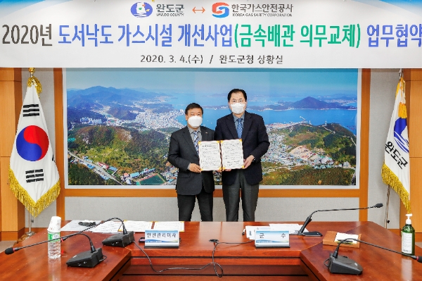 이번 협약에서 양기관은 완도군 도서지역 LPG 사용 가구의 사고예방 및 에너지 복지 실현을 위해 △완도군 금속배관 교체사업 예산 지원 △공사 사업설명회, 청년일자리 채용 및 현지인 교육, 개선세대 검수 등에 협력키로 했다.