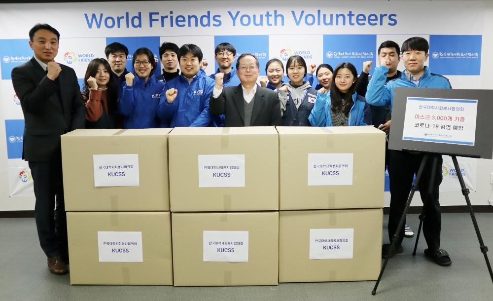 이번에 기증된 마스크는 한국대학사회봉사협의회가 올해 파견 예정인‘월드프렌즈 청년 단기 및 중기 봉사단’(대학생 약 1천500명)에게 안전물품으로 지급하기 위해 작년 연말에 구매해 보관해 온 것으로, 최근 ‘코로나19’의 확산으로 마스크 지원이 시급한 대구시에 기증하게 됐다.