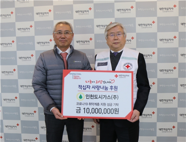 인천도시가스는 5일 대한적십자사 인천광역시지사에 코로나19 확산 방지와 위기 극복을 위해 1000만원의 기부금을 전달했다고 밝혔다.