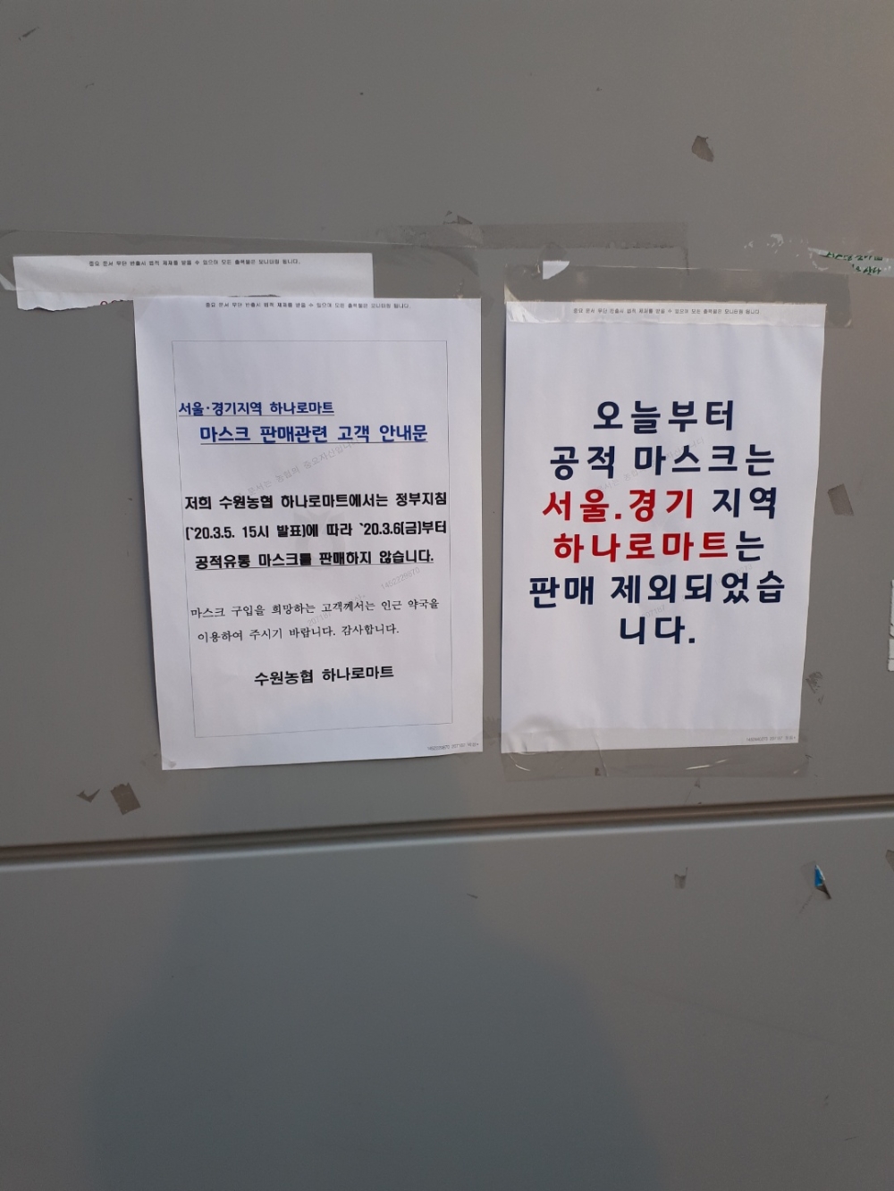 [핀포인트뉴스=차혜린 기자] 7일 수도권의 한 농협 하나로마트에 공적마스크 판매 중단을 알리는 안내문이 붙어있다. 차혜린 기자 chadori95@gmail.com 차혜린 blish@thekpm.com 다른기사 보기 저작권자 © 핀포인트뉴스 무단전재 및 재배포 금지 지금 인기 있는 기사 1 초전도체 연구 필수 기술 확보…신성델타데크, LK-99 관련주 부각 2025.11.20 14:51 2 전장·배터리까지 노린다… 이노테크, 차세대 신뢰성 장비 승부수 2025.11.20 10:40 3 선박엔진 수주 훈풍…HD현대마린엔진 실적 모멘텀 살아났다 2025.11.24 14:59 4 민주당 성남 지역위-국토부, 당정협의... "SRT 성남 연결·고도제한 완화 맞손" 2025.11.21 08:54 5 에코프로, 양극재 넘어 ‘친환경 신사업’ 가속…새 성장 사이클 온다 2025.11.20 13:13 6 HL만도, 이번엔 로봇이다…4족·휴머노이드까지 정조준 2025.11.24 14:48 Pin's Pick 지사형 GA 절반이 ‘취약·위험’… 대형 GA 내부통제 3등급에 머물러 삼성화재, 부사장 4명·상무 7명 승진… “전문성 중심 조직 재정비” 금융당국, 주가조작 대응체계 점검… 합동대응단 성과·제재 강화 논의