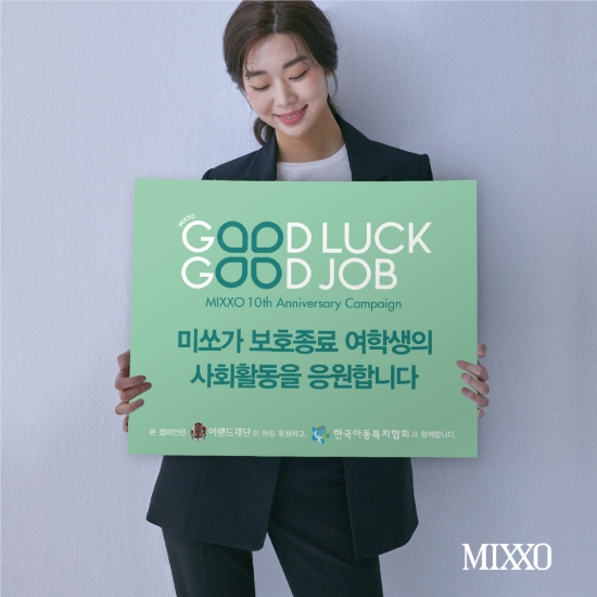 [핀포인트뉴스=이정훈 기자] 이랜드월드(대표 최운식)가 전개하는 글로벌 여성 SPA 브랜드 미쏘(MIXXO)가 8일 세계 여성의 날을 맞이해 양육 시설 보호종료여성 취업 준비생에게 면접 정장을 지원하는 ‘굿럭굿잡(Good Luck, Good Job)’ 캠페인을 진행한다.