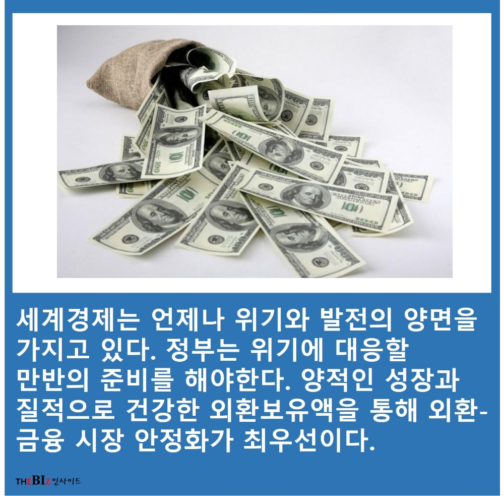 세계경제는 언제난 위기와 발전의 양면을 가지고 있다. 정부는 언제나 위기에 대응할 만반의 준비를 하고 있다. 양적인 성장과 질적으로 건강한 외환보유액을 통해 외환-금융 시장 안정화가 최우선이다.