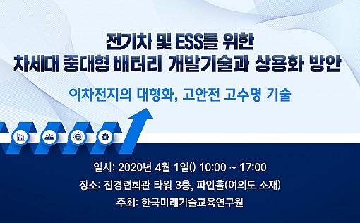 [핀포인트뉴스=박남철 기자] 한국미래기술교육연구원(대표 박희정)은 오는 4월 1일 오전 10시 여의도 전경련회관 파인홀에서 '전기차 및 ESS를 위한 차세대 중대형 배터리 세미나'를 개최한다고 10일 밝혔다.