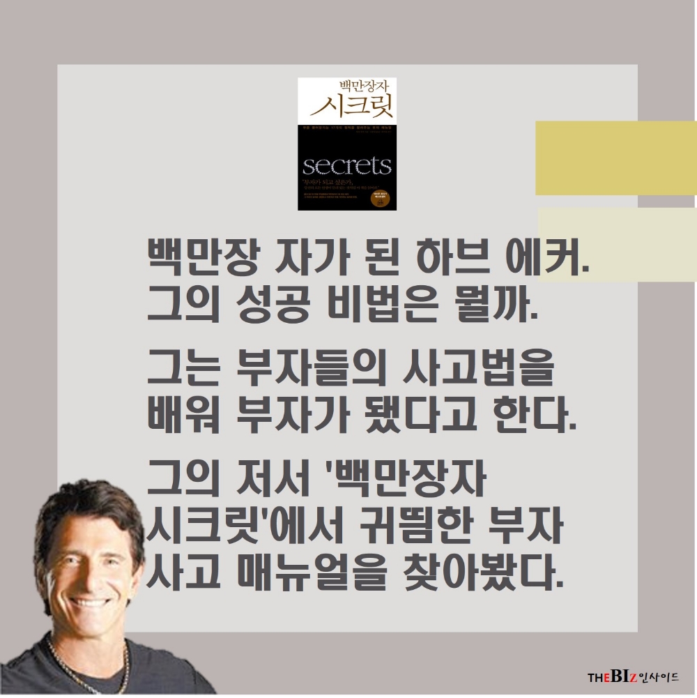 무일푼에서 불과 2년 만에 백만장자가 된 하브 에커. 그의 성공 비법은 뭘까. 그는 부자들의 사고법을 배워 부자가 됐다고 한다. 그의 저서 '백만장자 시크릿'에서 귀띔한 부자 사고 매뉴얼을 찾아봤다.