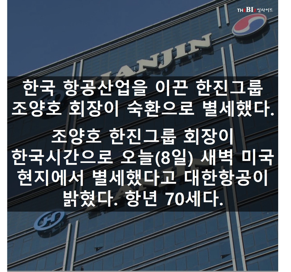 한국 항공산업을 이끈 한진그룹 조양호 회장이 숙환으로 별세했다.