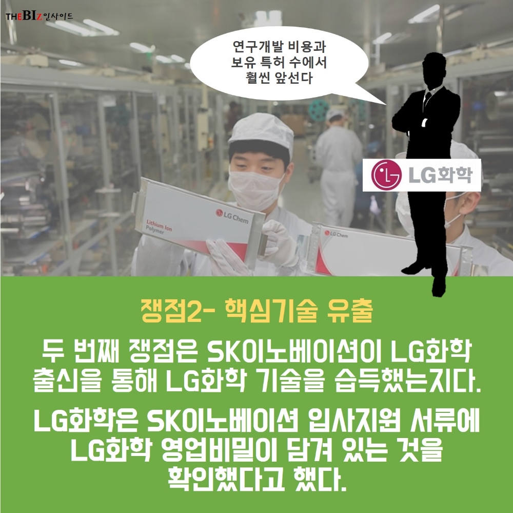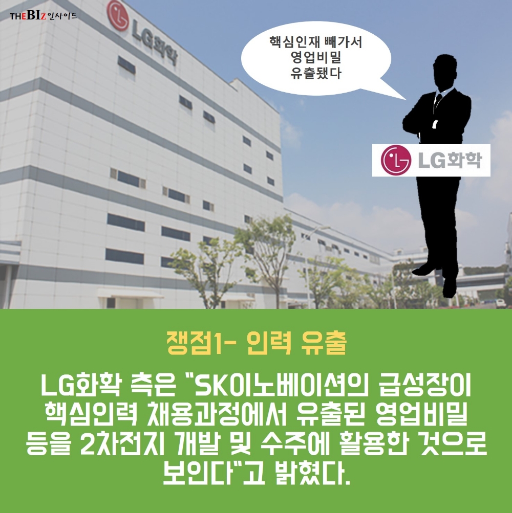 LG화확 측은 "SK이노베이션의 급성장이 핵심인력 채용과정에서 유출된 영업비밀 등을 2차전지 개발 및 수주에 활용한 것으로 보인다"고 밝혔다.