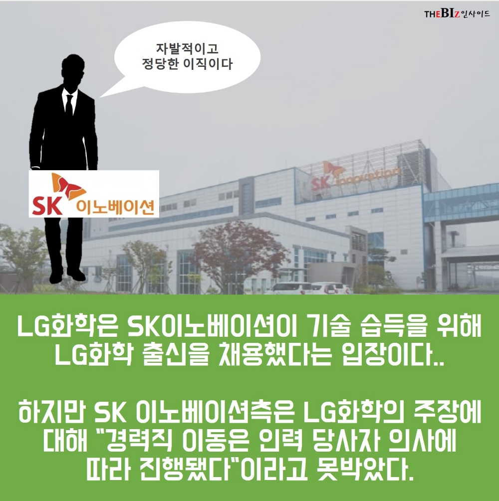 LG화학은 SK이노베이션이 기술 습득을 위해 LG화학 출신을 채용했다는 입장이다. LG화학은 SK이노베이션에 내용증명을 보내 항의하기도 했다.