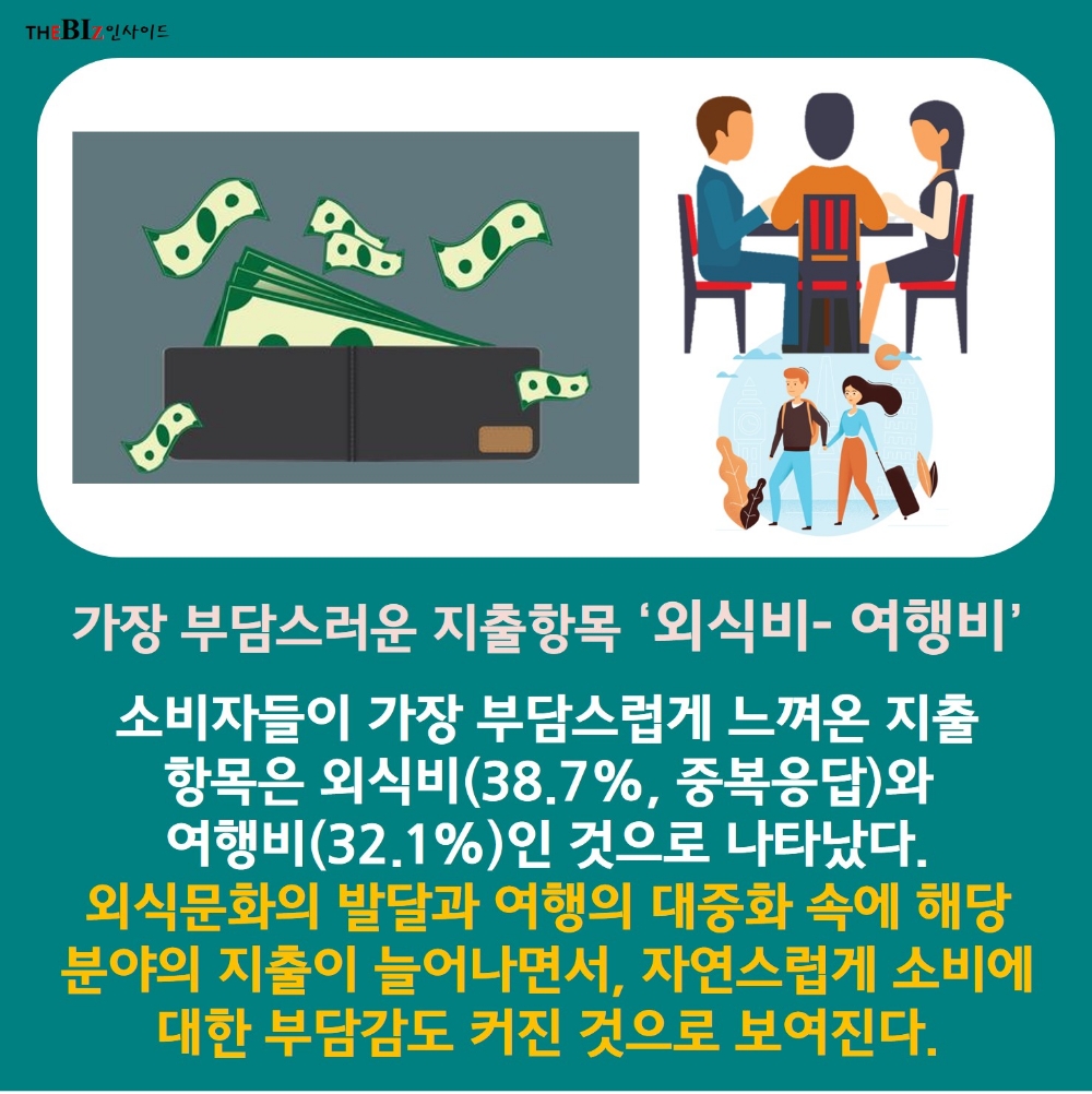 올 한해 가장 부담스럽게 느낀 지출 항목은 ‘외식비’와 ‘여행비’
