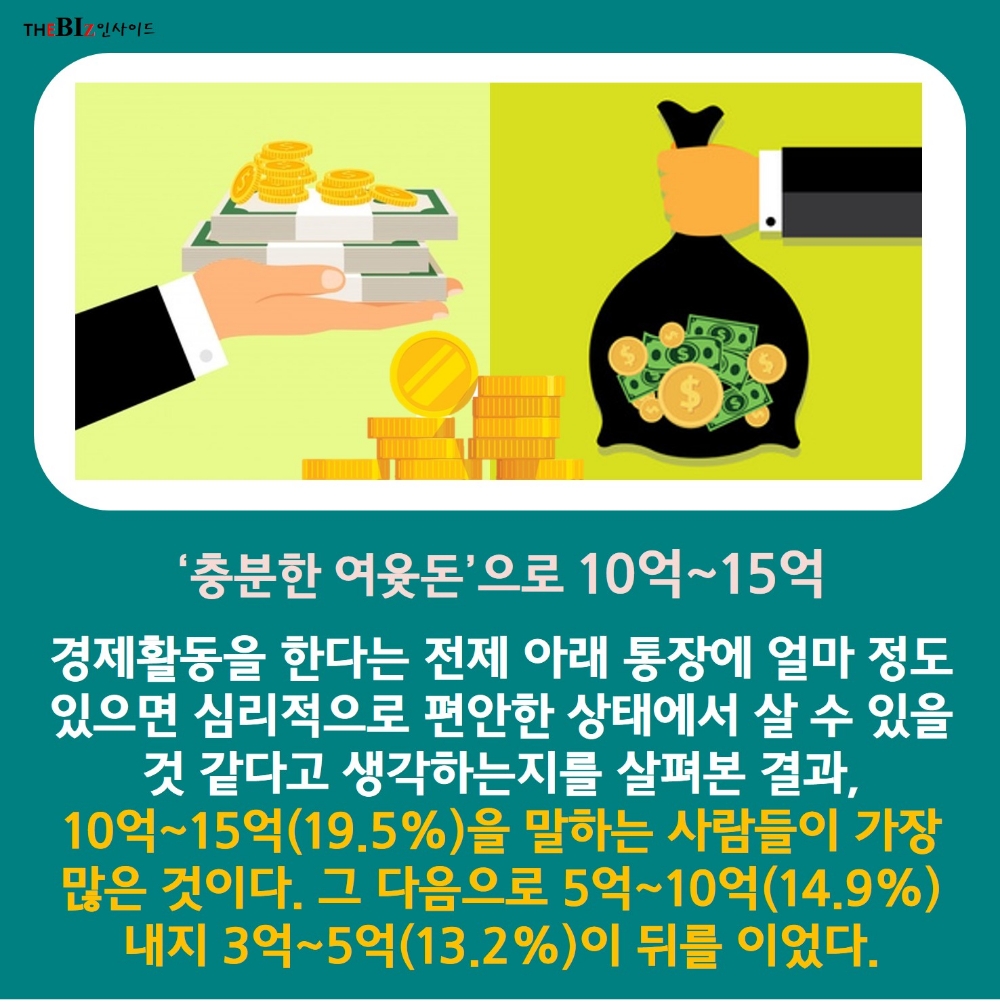 ‘충분한 여윳돈’으로 10억~15억을 가장 많이 꼽아