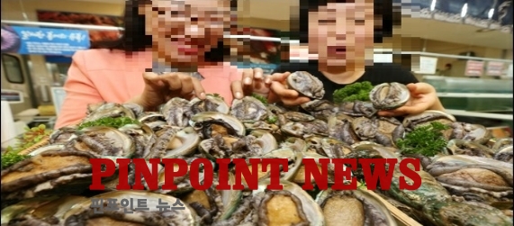 해당 코너는 전복을 구매하려는 소비자들로 장사진을 이뤘다. 진열된 전복이 소진될 때마다 이를 다시 채워 넣는 직원들의 움직임도 분주했다.