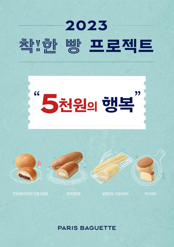 파리바게뜨 관계자는 "착!한 프로젝트가 소비자들로부터 좋은 반응을 얻어 이번 5000원의 행복 행사를 진행하게 됐다”며 “앞으로도 소비자들에게 다양한 혜택을 줄 수 있는 행사를 꾸준히 선보일 것”이라고 전했다