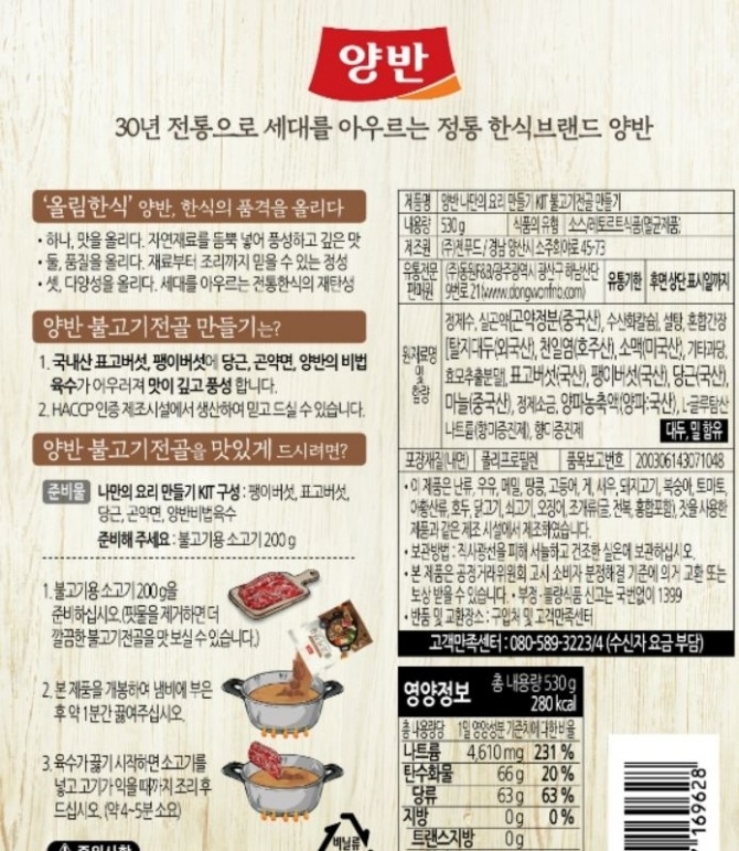 회사 측은 “엄선한 국내산 자연재료와 양반 브랜드의 노하우가 담긴 비법육수가 들어있어 별도의 재료 손질 없이 손쉽게 요리를 완성할 수 있다”며 “다단살균 공법을 적용해 실온에 보관해도 재료의 신선함을 유지할 수 있다”고 강조했다.
