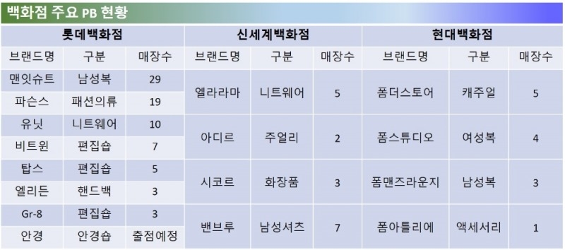 이처럼 백화점들이 앞다퉈 PB 확대에 나서는 이유는 경쟁 백화점에는 없는 PB 제품을 통해 차별화된 경쟁력을 확보할 수 있기 때문이다.