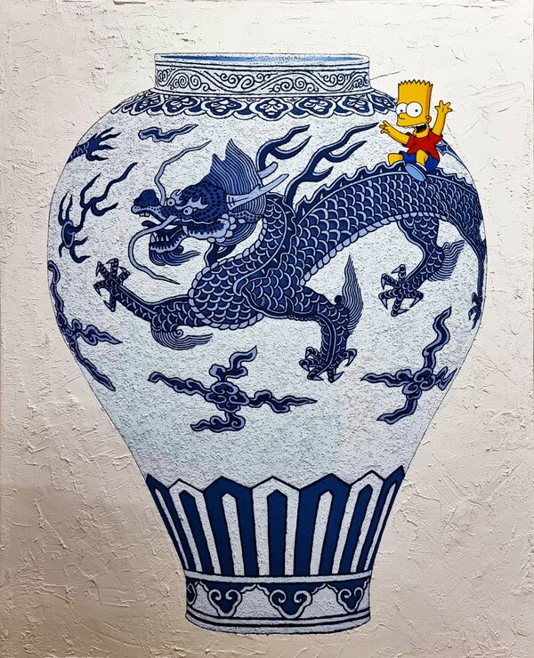 권용래 작가는 솟아오르는 용과 같은 형상의 작품을, 정직성 작가는 풍성한 색감과 역동적인 붓질로 삶의 경험을 추상적으로 재현한 작품을 각각 선보인다. 이종기 작가는 심슨 캐릭터가 한국 전통 청화백자 속 용을 타고 모험하는 재치 있는 작품으로 고객과 만난다.