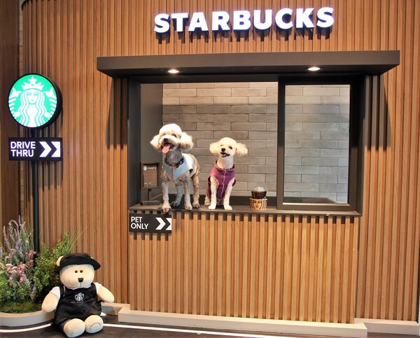 또한 펫 전용 공간에는 스타벅스 드라이브 스루를 모티브로 한 포토존을 마련해 반려동물과 동반한 고객이 소중한 추억을 남길 수 있도록 했다.