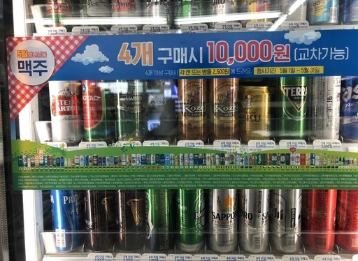 그동안 수입 맥주는 낮은 세금 등을 무기로 편의점에서 4캔에 1만원의 저가 공세를 펼치며 국내 시장을 파고들었다.