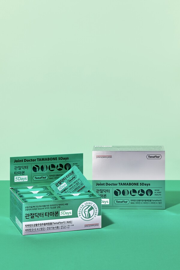 KGC인삼공사 정관장은 5일간의 섭취만으로 다양한 관절 건강 개선이 확인된 기능성 원료를 소재로 한 '관절닥터 타마본 5Days'를 출시했다고 26일 밝혔다.