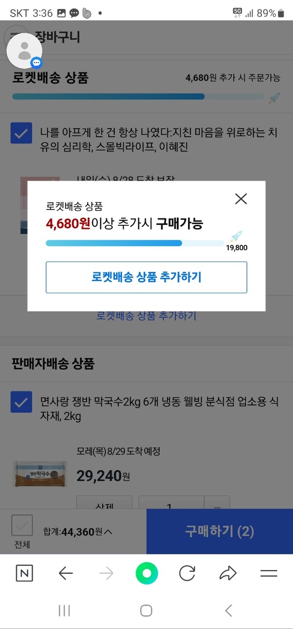#1. 서울 동작구에 사는 주부 A씨(60)는 최근 쿠팡에서 물건을 구매하려다 애초에 구매하려고 했던 상품 가격보다 더 많은 값을 지불했다. 도서 1권을 구매하기 위해 상품을 검색했더니 쿠팡 어플리케이션 상단에는 '로켓배송' 상품들이 다수 노출돼 있었고, 온라인 쇼핑에 익숙치 않은 A씨로선 로켓배송 상품을 눌러 들어간 것이다. 이를 인지하지 못하고 상품 구매하기를 누른 A씨는 난관에 봉착했다. 로켓배송 상품이니 최소주문금액인 1만9800원을 채워야 구매가 가능하거나 익일 오전 7시까지 배송 받을 수 있는 '와우회원' 무료체험으로 유도하는 팝업창이 화면에 떴기 때문이다. 1만5120원을 지불하고 도서 1권만 구매하고 싶었던 A씨는 처음에는 이 팝업창을 무시하고 꺼버렸지만 구매하기를 누르자 지속적으로 같은 메시지를 담은 팝업창이 노출됐다. 결국 A씨는 4680원의 추가 금액을 결제하고 로켓배송 상품으로 도서를 구매해야만 했다. A씨는 "책 1권 사고 싶었을 뿐인데 구매하기를 눌렀더니 계속해서 팝업창만 뜨더라"라며 "어떻게 해야할지 몰라 5000원 정도를 더 주고 상품을 구매해야 해서 짜증이 났다"고 말했다.