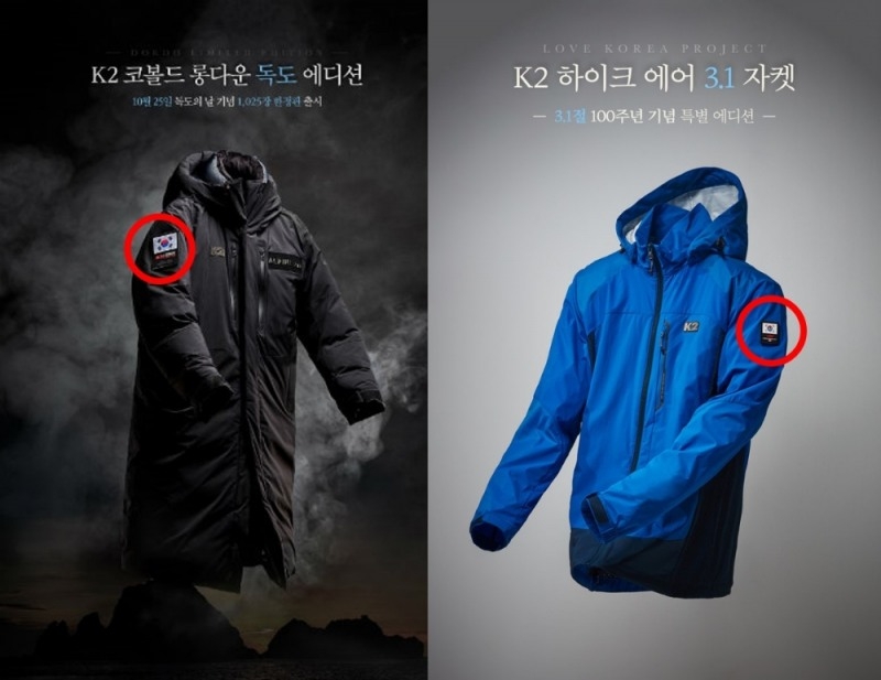 앞서 K2는 지난해 독도의 날을 맞아 '코볼드 롱다운 독도 에디션'을 출시해 '애국 마케팅'으로 톡톡한 재미를 봤다. 이 제품 역시 마찬가지였다. 평범한 롱패딩 점퍼다. 역시 소배 상단에 태극기 와펜을 부착했다.