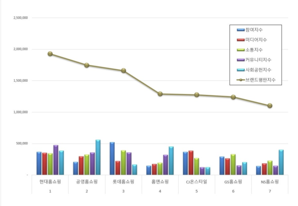 1월 TV홈쇼핑 브랜드평판 순위는 현대홈쇼핑, 공영홈쇼핑, 롯데홈쇼핑, 홈앤쇼핑, CJ온스타일, GS홈쇼핑, NS홈쇼핑 순이었다.