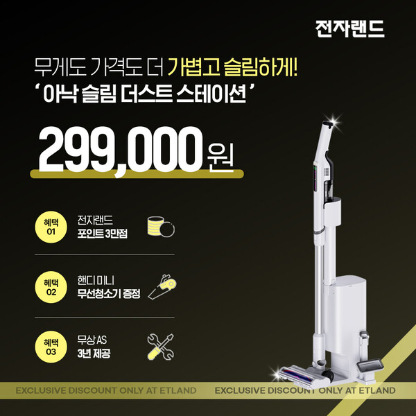 전자랜드는 자체브랜드(PB) 청소기 ‘아낙 슬림 더스트 스테이션’(이하 아낙 슬림)을 새롭게 출시하며, 오는 5일부터 사전 예약 판매를 시작한다고 3일 밝혔다.