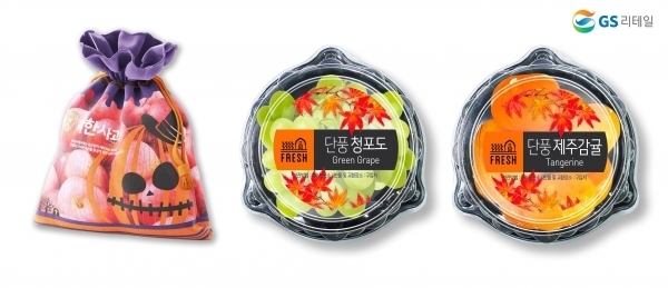 GS리테일의 시즌 대표 상품인 제주밀감과 수입 청포도 포장 패키지에 단풍 디자인을 입혀 가을 분위기를 느낄 수 있도록 했다.