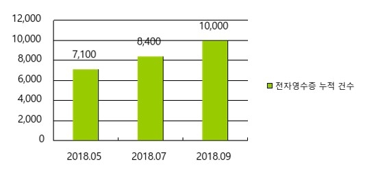 지난 5월 말까지 매월 평균 395만건이 발급되었던 전자영수증이 6월 이후부터는 월 평균 750만건으로 발급수가 2배 가까이 증가하며, 해당 건수만큼의 종이영수증이 절감되고 있다.